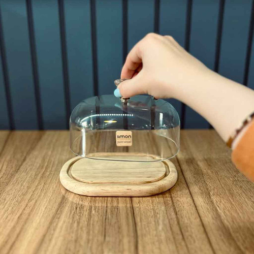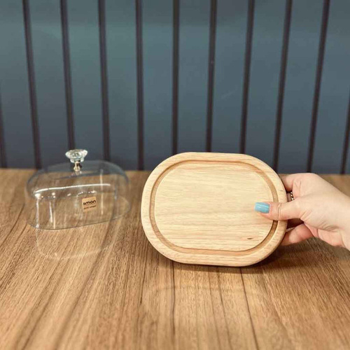 سینی یا کفه چوبی این جاکره ای برای هر اندازه کره مناسب است و کره با درب شیشه ای تماس نمی گیرد. جنس چوبی مانع از سرخوردن کره یا پنیر در هنگام برش می شود .