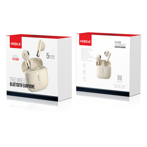 ایرفون های هندزفری بلوتوث FX-529 هیسکا به صورت Semi In-Ear است که به شکل کامل درون گوش جای میگیرند و به محض اینکه آنها را درون گوش خود میگذارید، کم شدن نویز و صداهای اضافی محیط را متوجه میشوید. ایرفون ها وزن بسیارکمی دارند که باعث شده تا در طولانی مدت امکان استفاده از آن را داشته باشید و کمتر خسته شوید. هندزفری هیسکا FX-529 دارای بلوتوث نسخه 5.2 است. با استفاده از این هندزفری می توان تا فاصله ده متری (بدون هیچ مانعی) بدون افت کیفیت به موسیقی گوش داد. از دیگر قابلیتهای بلوتوث نسخه 5.2 اتصال پایدارتر است. اگر گوشی شما نیز دارای نسخه 5.2 بلوتوث باشد، باتری استفاده شده از هندزفری و گوشی، کمتر خواهد بود. بر روی این هندزفری بلوتوثی ، پنلهای لمسی قرار داده شده است که با لمس کردن این پنلها میتوانید کاربردهای مختلفی را که هیسکا برای شما در نظر گرفته است انجام داده و در کل کاربری راحتتری داشته باشید. هندزفری بلوتوث FX-529 دارای باتری با ظرفیت 300 میلی آمپر ساعت است. میزان شارژدهی برای ایرفون های این هندزفری جهت شنیدن موسیقی 5 ساعت و مکالمه 4 تا 5 ساعت می باشد.